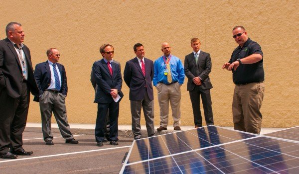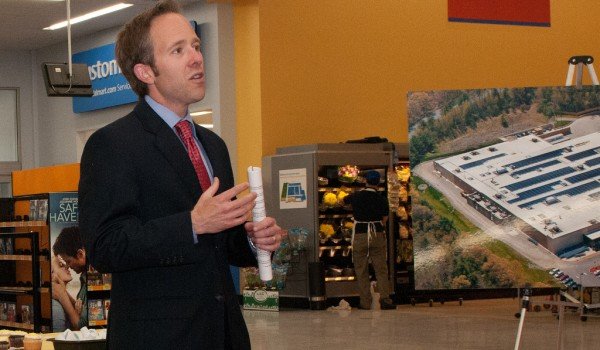 About 20 people gathered at our supercenter in Walpole, Mass., yesterday – among them the state’s Department of Energy Resources Commissioner Mark Sylvia, Walmart associates, community members, business leaders, and interns from the Environmental League of Massachusetts – to celebrate the completion of eight solar installations across the state.