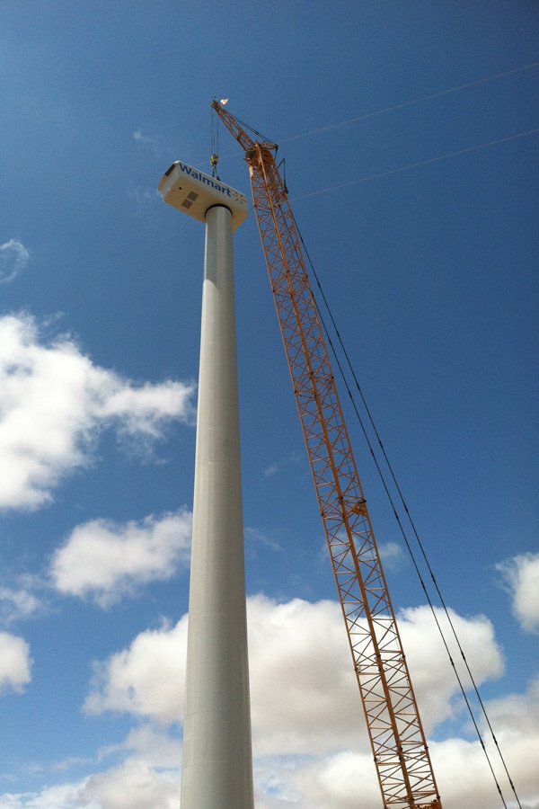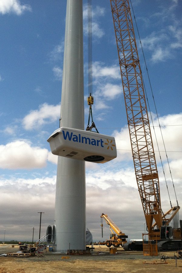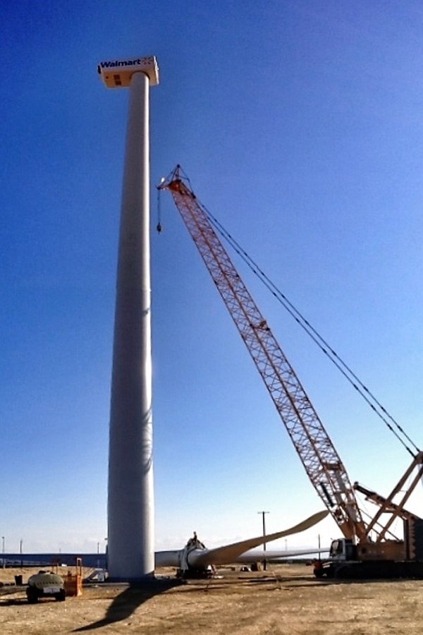 In Red Bluff, Calif., a Walmart distribution center will soon be distributing more than just products. Today, Forbes reported that a 265-foot-high wind turbine is being completed on the site. According to the story, the 1-megawatt General Electric turbine will supply between 15 and 20 percent of the center’s electricity and is the next step in our ultimate goal to be powered 100 percent by renewable energy.